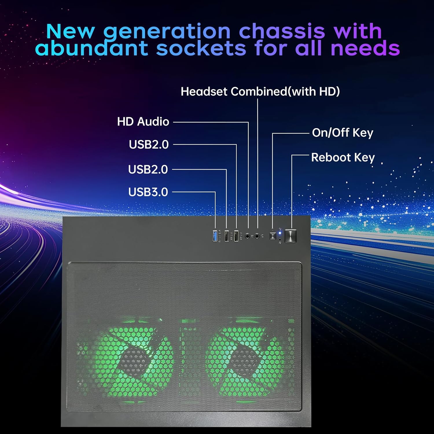 Massive Storage Capacity: With a 1TB M.2 SSD, this gamming PC desktop offers ample space for all your favorite software, and media, allowing for quick load times and seamless multitasking without the need for constant upgrades.